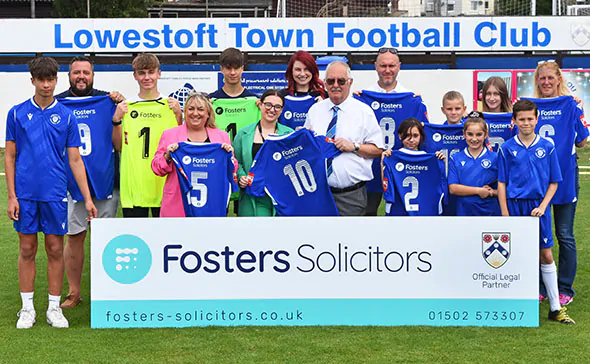 Fosters Solicitors and Lowestoft Town Football Club are delighted to announce the extension of their long-standing community partnership, which will also see the club’s home ground named the Fosters Solicitors Community Stadium.