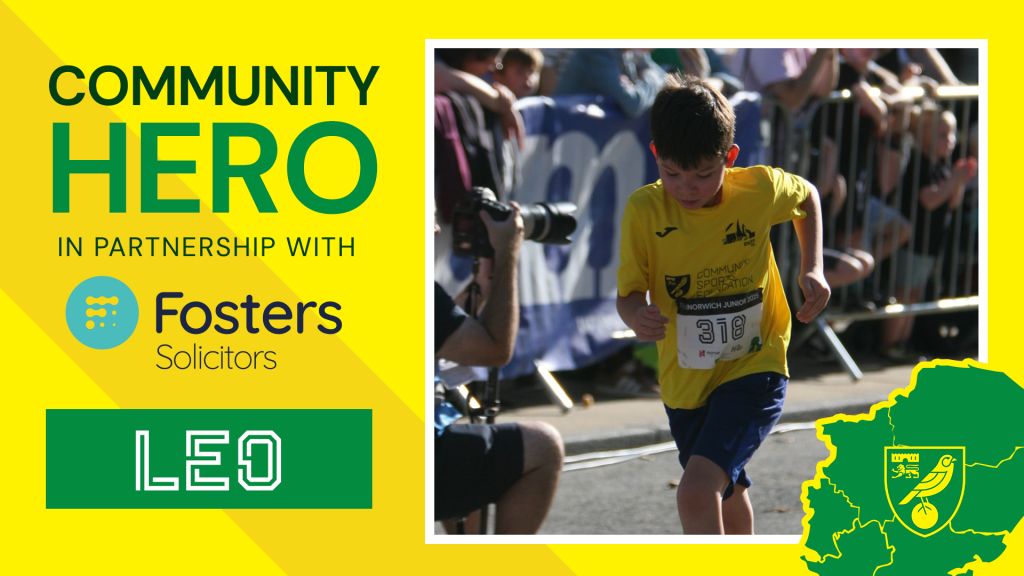 This month’s Fosters Solicitors’ Community Hero is eight-year-old Leo, nominated for his incredible fundraising for the Community Sports Foundation at this year’s Junior Run Norwich race.